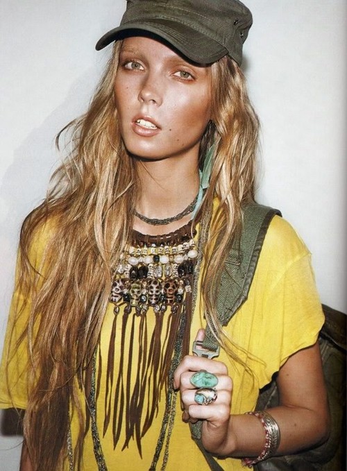 J'adore ce look hippie boho avec la touche militaire ! Et puis, encore une fois, j'adore tous ces bijoux ; toutes ces bagues en argent et turquoise, ces colliers en turquoise et corail ... Le sac de la 1ère photo est sublime !!!! En fait, tout ici est sublime pour moi ! Voilà un look qui m'inspire énormément ...